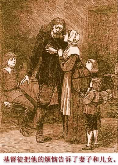 我睡熟了,做了一个梦 我在旷野里行走,来到一个地方,那里有个洞穴,我就在 那儿躺下睡觉∶我睡熟了,做了一个梦。 唉,我梦见一个衣衫褴褛的人站在那儿1, 背后就是他自己的房子2 , 他手里拿着一本书3, 背上背着一件看来很重的东西4。 我见他打开手上的一本书念着;他一面念,一面不住地流泪, 浑身颤抖着;他委实控制不住了,发出一声悲伤的呼喊∶“我 该怎么办呢5?” 就在这样极度苦恼的境况中,他转身回家去了。他强自压 制着,以免他的妻子和儿女们发觉他的悲痛;可是他不能长久 保持缄默,因为他的烦恼越来越厉害了。他终于把他的心事告 诉了妻子和儿女,他对他们这样说∶“唉,我亲爱的妻子,你 们,我的亲生儿女,我是你们亲爱的友伴,我可要被那压在我 身上的重负毁了;并且我确实知道我们这个城市将要给天火烧 毁;在那场可怕的灾难里,我自己,你,我的妻子,和你们, 我可爱的儿女,都将同归于尽,除非我们能够想出一个逃生的 办法,可是到如今我还想不出什么办法来。”他家中的人听了 这番话,好生诧异;这并非因为他们相信他的话,而是他们认 为他的神经错乱了;因此,等到傍晚天快黑的时侯,他们希望 睡眠能够使他的神经镇静下来,就急忙打发他去睡觉。但是对 他说来,黑夜和白天同样烦恼;因此,他不但睡不着觉,而且 整夜的叹息、流泪。后来,天亮了,他们急着要知道他的情形。 他告诉他们,更糟,更糟。他又开始对他们讲话;可是他们开 始狠起心来了。他们还想用强硬粗暴的态度来驱除他的怪病; 有时他们愚弄他,有时责骂他,有时根本不理睬他。因此他就 回到自己的房间里去为他们祈祷,一心的怜悯他们,同时他也 为自己的痛苦寻求安慰;他还独个儿在田野里徘徊,有时候看 书,有时候祈祷;他就这样度过了好多日子。 有一天我看见他在田地里走着,照常看著书,显出满怀痛 苦的神气;他一面看书,一面又那样大声喊着∶“我怎么才能 得救呢6?” 我看见他东张西望,好像要撒腿逃跑;可是他仍然站着, 因为,我看到他似乎不知道往哪儿去才好。我再一看,却见一 个叫做宣道师的向他走来,问他为什么哭喊。 他回答说∶先生,我从手里这本书上看到,我已被定罪了, 要死去7, 将来还要受审判8;而我,既不愿意死, 又受不起审判9。 宣道师说∶人生既然有这么多的灾难,为什么又不愿意死 呢?他回答说,因为我怕这个在我背上的重负会把我压得沉到 比坟墓还深的地方去,坠到地狱10里去。先生,如果我还没有做 好准备到牢狱里去,我更没有做好准备去受审判,然后再去受 刑罚;想到这些事,我不禁失声痛哭。 宣道师说∶你的情形既是这样,为什么你还站着不动呢? 他回答说,因为我不知道上哪儿去才好。于是宣道师给他一卷 羊皮纸,上面写着,“逃避将来的天罚11!” 那人看了以后,忧愁地望着宣道师说,我得逃到哪儿去呢? 于是宣道师就指着那一片辽阔的田野的尽头说,你看得见那边 有扇 小门12吗?那人说∶看不见。宣道师又说,你看见那边的亮 光吗13?他说,我相信我看见了。于是宣道师说,不要转移你的 视线,一直朝着那亮光走去,这样你就能够看见那扇小门;你 敲那门的时候,有人会告诉你应该怎么做。 这时候我在梦里看见那个人开始跑起来。可是他刚刚跑出 了家门口没有多远,他的妻子和儿女就发觉了,立即大声喊他 回去14;但他却用手指塞住耳朵,一面跑,一面喊∶“生命!生 命!永恒的生命!”他就这样头也不回地15,拚命逃往平原的中 央。 邻居们也都跑出来看他,他跑着,他们有的讥笑他,有的 吓唬他16,有的喊他回来;其中有两个人决定要硬把他抓回来。 这两个人一个名叫顽固,另一个叫做柔顺。当时那人已经离开 他们好一段路了;可是他们还是要追他,而且真的追了去,不 一会功夫就追上了他。于是那人说,邻居们,你们来干什么? 他们说,来劝你跟我们一道回去。但是那人说,无论如何不行; 你们所居住的毁灭城,也是我的出生地;我知道那地方必定要 毁灭的。所以,如果死在那里,你迟早免不了要沉到比坟墓还 深的地方去,沉到一个烧着硫磺火焰的地方去;好邻居,请放 心跟我一起走吧。 顽固说∶怎么!难道就此撇下我们的朋友和我们舒适的生 活吗? 基督徒(这是那个人的名字)说∶对,因为你所撇下的一 切17,加起来都比不上我将要享受到的一丁点 18;如果你跟我一起 去,并且坚持到底,你就能够和我过同样的日子;因为在我要 去的那个地方,什么都有,而且绰绰有余19。来吧,来看看我说 的是不是真话。 顽固说∶既然你抛弃世上的一切去追求那些东西,你寻找 的究竟是些什么呢? 基督徒说∶我寻找的是一个不会毁坏、没有玷污、不至消 失的产业20;它是安安稳稳地存在天上 21,在一定的时候会赐给那 些勤勤恳恳寻求它的人。你愿意的话,可以看看我这本书里怎 么说的。 顽固说∶啐!拿开你的书;我问你,你到底跟不跟我们回 去? 基督徒说∶不,我不回去,因为我已经开始走我的路了22。 顽固说∶邻居柔顺,我看我们还是丢下他回去吧;你要晓 得,天下自有一班疯疯癫癫的轻浮的家伙,他们一旦心血来潮, 就执迷不悟起来,还自以为比七个有同样见解的人还更聪明 哩。 接着,柔顺说,不要随便骂人;如果基督徒说的是真实的, 他所追求的东西的确比我们的好;我倒想跟我的邻居一起去 呢。 顽固说∶怎么!这样的傻瓜竟有的是!听我的话,回去吧; 谁知道这么一个脑子出了毛病的人会