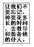 ¯«ªº©¾¹²¥²¶·¼f·V¦Ó¦³@¤ß¡A¥¿¦p ¯«¦b±Ð¾É©M¸Ë³Æ¨Æ©^¥Lªº¤H®É¡A¤]Åã¥X¥Lªº@¤ß¤@¼Ë¡C§Ṳ́£n§Ñ°O¥D¥Î¤F¦hªøªº®É¶¡¡A¥h±Ð¾É©M¸Ë³Æ¨È§B©Ô¨u¡A¨ì³Ì«á¥D¤~½çµ¹¨È§B©Ô¨u©ÒÀ³³\ªº¨à¤l¥H¼»¡F§Y¨Ï³o¼Ë¡A¥D¤´µ¹¤©³o¦ì±Úªø§ó¦hªº°V½m¡C§ÚÌ»ÝnÀR«ä²Ó·Q®J¤ÎºÊº»¤¤ªº¬ù·æ¡A¦b¦Ì¨l¨Fºz¤¤ªº¼¯¦è¡A§@¬°¼¯¦èÀH±qªº¬ù®Ñ¨È¡B¦bÃm³¥¤¤±`³Q±½Ã¹°l±þªº¤j½Ã¡A¦bÃm³¥¥Í¬¡ªº¬I¬~¬ù¿«¡A§@®³¼»°Ç¤ì¦K¤§¤l¦³¤T¤Q¦~¤§¤[ªºC¿q¡A±µ¨ü¤T¦~°V½mªºªù®{¡A¥H¤Î¦bªü©Ô§B±µ¨ü¤T¦~°V½mªº«Où¡A ¯«¦b¸Ë³Æ¥L̪º¤u§@¤W¡A³£¬Oº¡¦³@¤ßªº¡C³o¨Ç³£¬O¨Ò¤lÅã©ú ¯«¦b±Ð¾É©M¸Ë³Æ¥L³Ì¦³¥Îªº¤u¨ã¤W¡A¬O¦p¦óºÉ¤ß¡B§Ô@¡BºCºC¦a¤u§@¡C¬JµM§ÚÌÄݤѪº¾É®v»{¬°»Ýn±q®e¦a±Ð¾É¥Lªºªù®{¡A¦nÅý¥L̦¨ªø¡A§Ṳ́]»Ý¡uªá¶O®É¶¡¡v¡A¥h¦n¦n¦a±Ð¾É§Ú̪º·|²³¡A¤£³æn¾Ç²ß·s¬ù¸t¸g¡A¤]n¾Ç²ß¬ù¸t¸g¡C¡u±q«e©Ò¼gªº¸t¸g¡A³£¬O¬°±Ð°V§Ú̼gªº¡A¥s§Ú̦]¸t¸g©Ò¥Íªº§Ô@©M¦w¼¢¡A¥i¥H±oµÛ¬ß±æ¡v¡]ù¤Q¤4¡^¡C