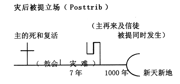 在启示录二十章4至6节所载之复活显然是第一次复活(信徒的),按启示录所载之次序而言,乃是在大灾难之后的。而在帖撒罗尼迦前书四章13至17节记载到去世之信徒复活以后,还活着之信徒才会被主提到空中,与复活了之信徒一齐在空中与主相遇。既在首次复活后,就应在灾后被提。同样在但以理书十二章1至3节所提的,应是在第七十个七之后,也就是在圣城被毁, 被污亵,五强争霸战已在中东发生了之后(但九26-27; 十一章等)才发生的。内中提到“复醒”(复活)于这些事后才发生。所以应指灾后被提。