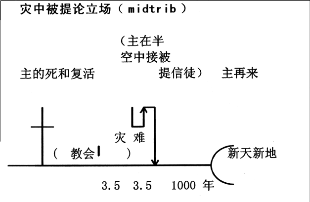 此派大部份根据与“灾后被提论”者相同,但在免去大灾难之痛苦的论据上采“灾前被提论”者之证据。然而,笔者尚未找到有系统介绍此派之理论,下列只属一些学者,一般异于灾后及灾前被提的分析。