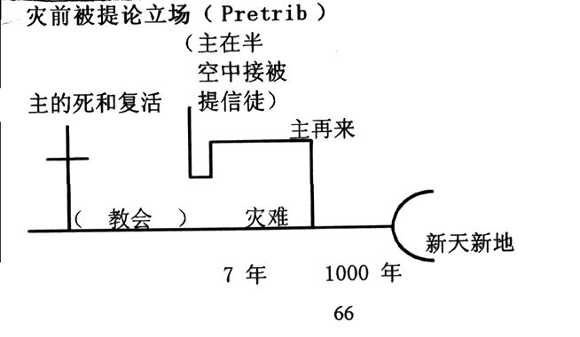 此派学者认为信徒将会在最后的七年大灾难发生以前,被主基督提到空中,以改变了的形象与主相遇及同在。换句话说,他们认为信徒是不会经历大灾难的。
