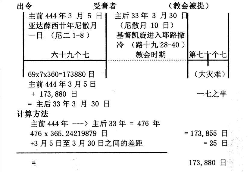 III 马太福音廿四章15至31节将但以理之第七十个七与主再来前的大灾难相提并论(15,参但九26-27),但在这时候“你们”、“选民”(太廿四20、22、24、26等),即信徒仍在地上,显然他们必须经历部份大灾难。