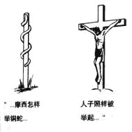 耶穌又說:「摩西在曠野怎樣舉蛇,人子也必照樣被舉起來。叫一切信他的都得永生。」(約三14-15)