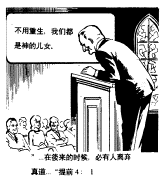 在很多教會裡也同樣有大背道。許多自稱為神的僕人的牧師不再傳講福音。他們不再告訴人們,人是迷失的罪人,需要藉著信基督的寶血而得救。相反,這些人否定重生的必要性,宣揚神是所有人的父,所有人都是弟兄。聖經告誡我們:「這等人你要躲開。」