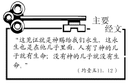 主要經文: 「這見證就是神賜給我們永生,這永生也是在祂兒子裡面。人有了神的兒子就有生命;沒有神的兒子就沒有生命。」(約壹五11-12)
