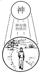 讓我們再劃一個圈代表神為我們安排的環境。在這個屬於我們的圓圈裡,神為我們提供了我們真正需用的一切。