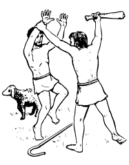 一天,當該隱和亞伯一起在地裡時,該隱起來打他的兄弟,並且把他殺了。就這樣,在這世界上出生的第一個人,由於不控制自己的怒氣,變成了一個殺人犯。