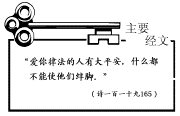 主要經文: 「愛你律法的人有大平安,什麼都不能使他們絆腳。」