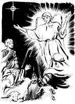 一大隊天兵同那天使讚美上帝說,「在至高之處,榮耀歸與上帝,在地上平安歸與他所喜悅的人……」