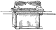 約櫃是一個箱子,約三尺半長,二尺半寬,及二尺半深。是用皂莢木造成,外包精金。在四圍鑲上金牙邊,又有鑄四個金環,安在櫃的四腳上,每邊兩環。用皂莢木造兩槓,外包精金,用以抬約櫃。