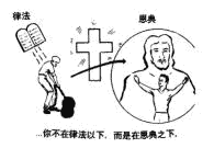 基督是怎样将我们从律法的管辖下释放出来的?借着我们与祂的同死。当我们与基督同死的时候,就脱离了旧的人,进入神儿子的国度里。我们不再是律法之下罪的奴仆,而是恩典之下神的儿女。圣经上说:“罪必不能作你们的主,因你们不在律法之下,乃在恩典之下。”(罗六14)